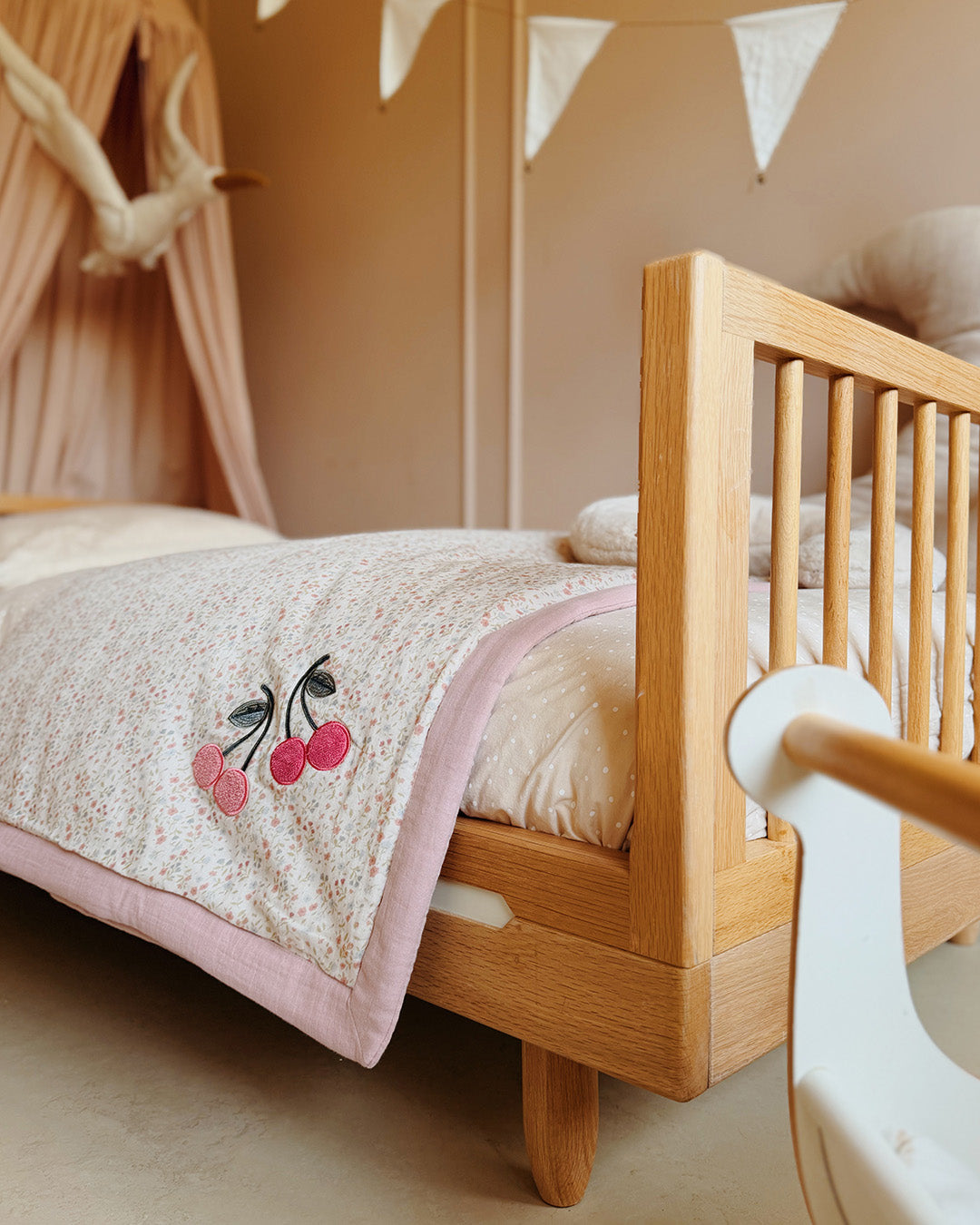 The large Nova Baby Blanket is perfect for school-aged kids. Crafted from soft muslin with 100% organic cotton and GOTS-certified, it meets the highest standards of safety and sustainability. Adorned with delicate cherry corner embroidery and a charming floral print, this blanket is as beautiful as it is cozy. Lightweight, breathable, and gentle, it’s ideal for year-round cuddles and comfort.