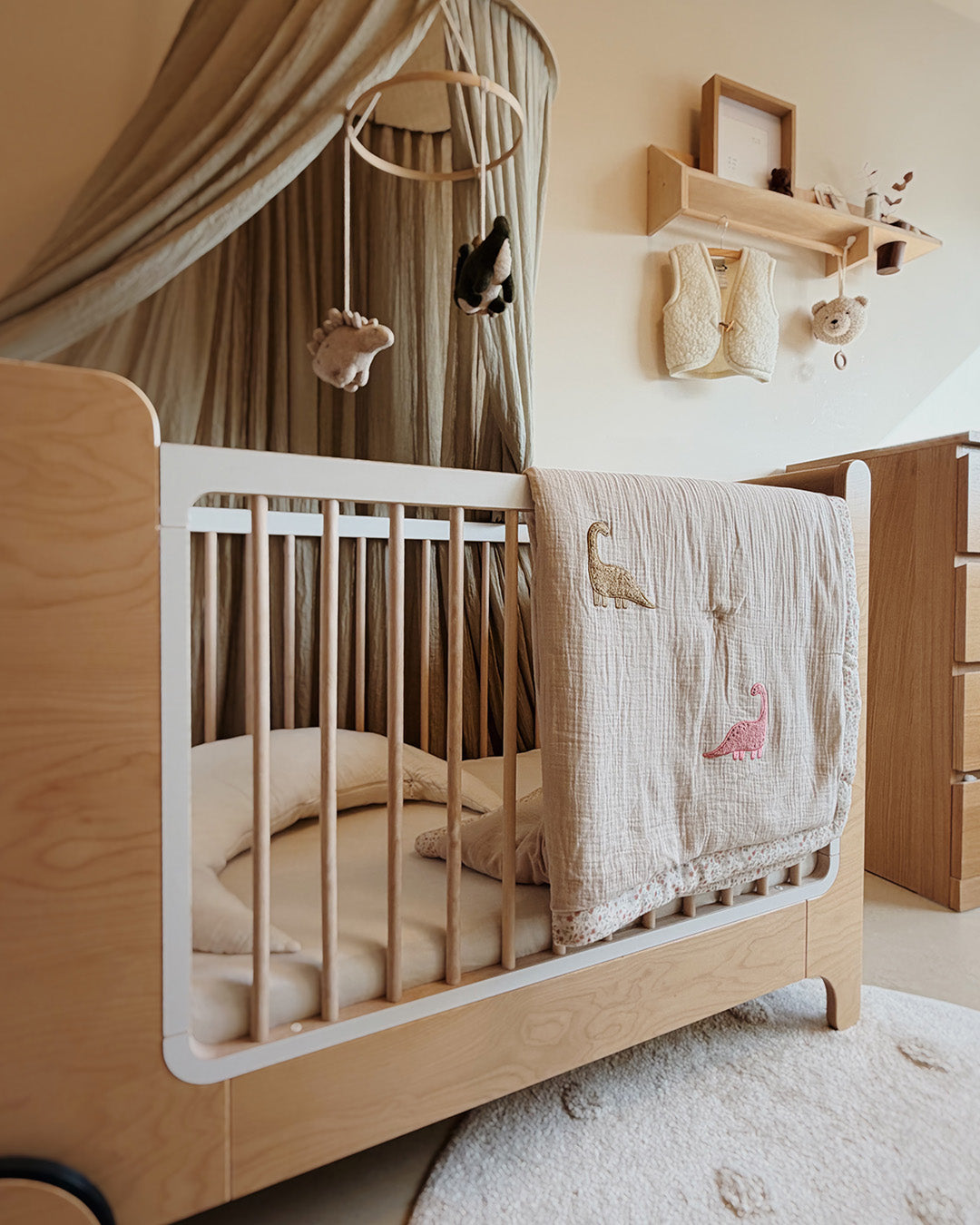 Wrap your little one in soft, cozy, and colorful comfort with the Nova Toddler Blanket. Made from 100% organic cotton muslin and GOTS-certified for the highest standards of safety and sustainability, it’s gentle on delicate skin. 8 playful, colorful dinosaur embroideries are scattered across the blanket, making it as fun as it is comforting. Lightweight, breathable, and perfect for year-round cuddles, the Nova Blanket adds a bright and cheerful touch to your child’s day.
