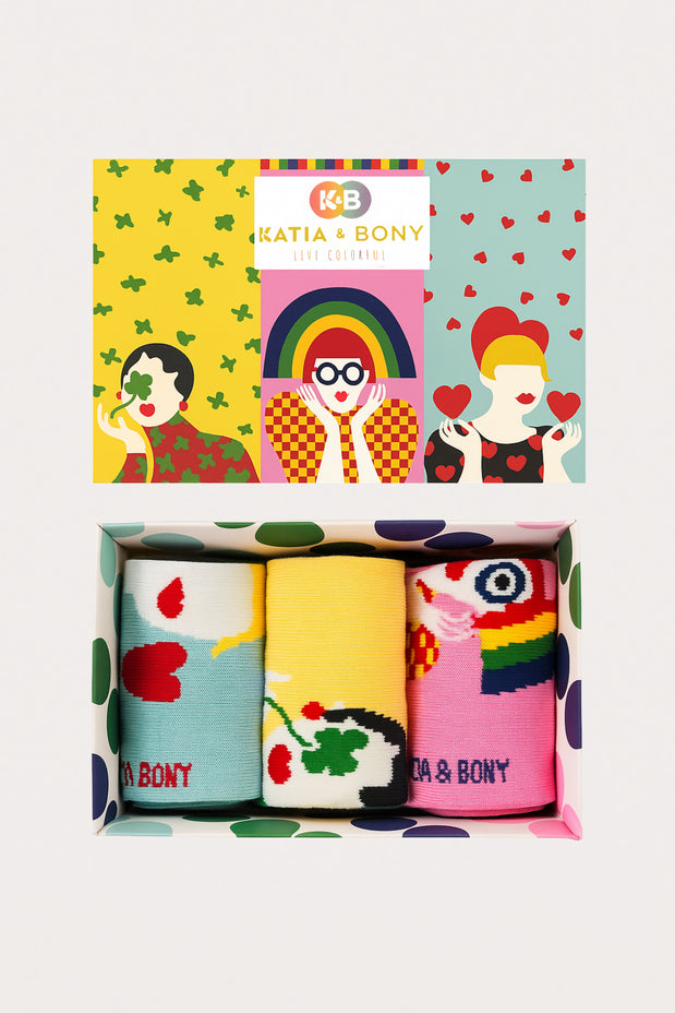 This 3-pack boxed socket sock set with women's face patterns will make you dance with colours at every step! Setting out with the lively and cheerful "Live Colorful" motto, this set is designed to leave the ordinary aside and add fun to your daily life. Each sock is decorated with different women's face patterns and will adorn your feet like a work of art.