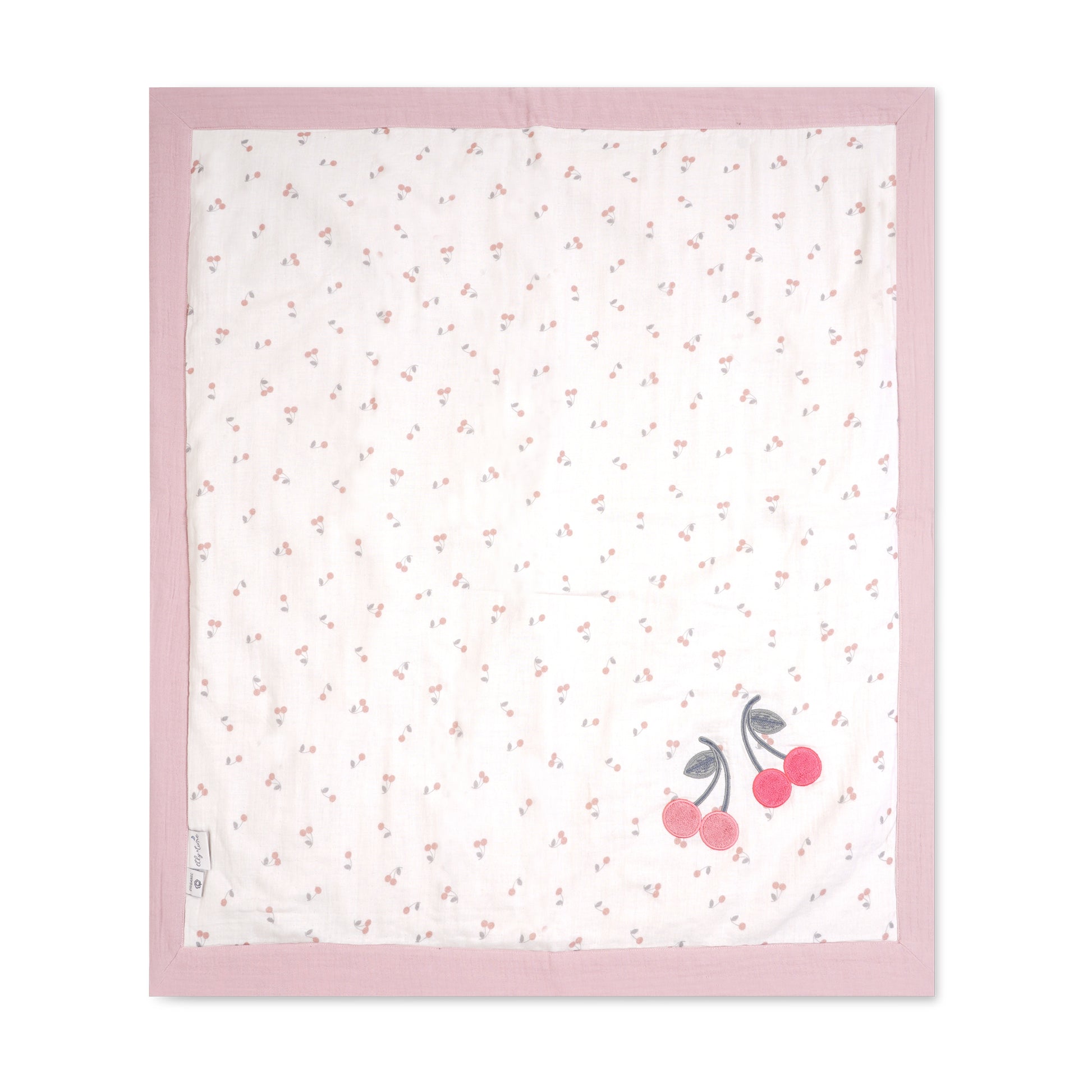 Wrap your little one in comfort and charm with the Nova Baby Blanket. Made from soft muslin using 100% organic cotton, this blanket is GOTS certified, ensuring the highest standards in sustainability and safety for your baby’s delicate skin. Featuring delicate cherry embroideries on the corner, the Nova blanket is as beautiful as it is cozy. Lightweight, breathable, and gentle, it's perfect for cuddling all year round.